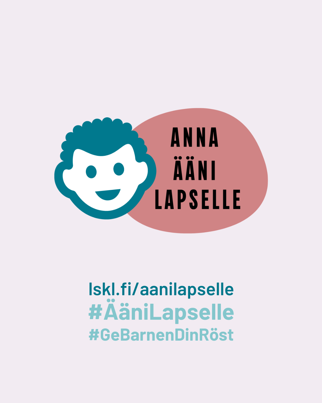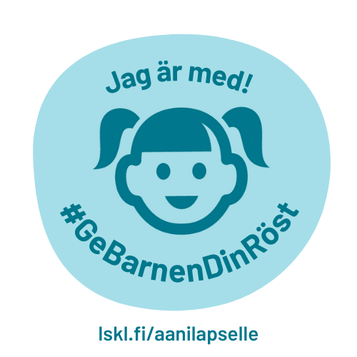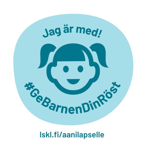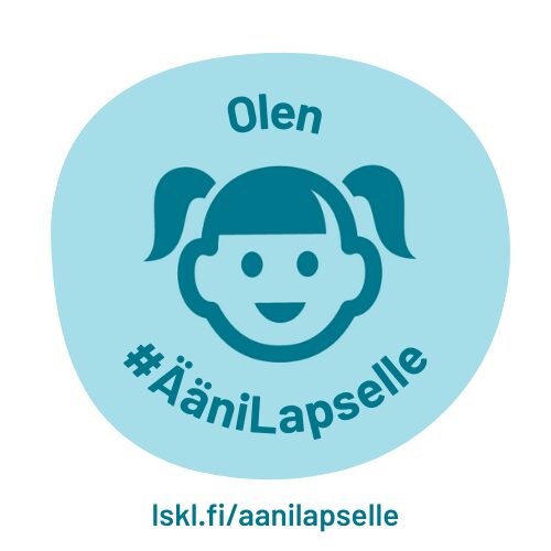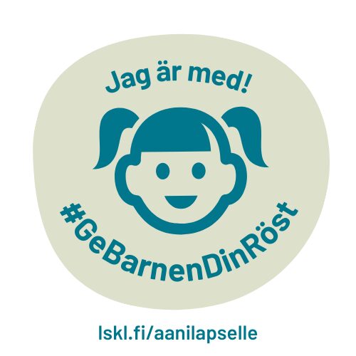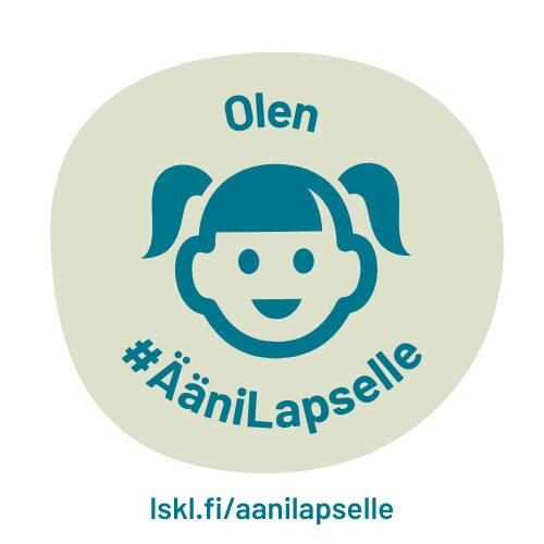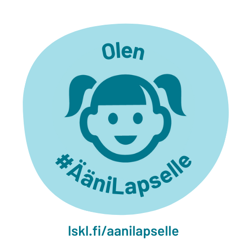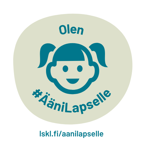 Ota käyttöösi myös Ääni lapselle -leima, jolla voit sosiaalisen median kanavissasi tai omalla verkkosivustollasi osoittaa olevasi lasten, nuorten ja perheiden puolella! Klikkaa kuvaa ja lataa se itsellesi!
