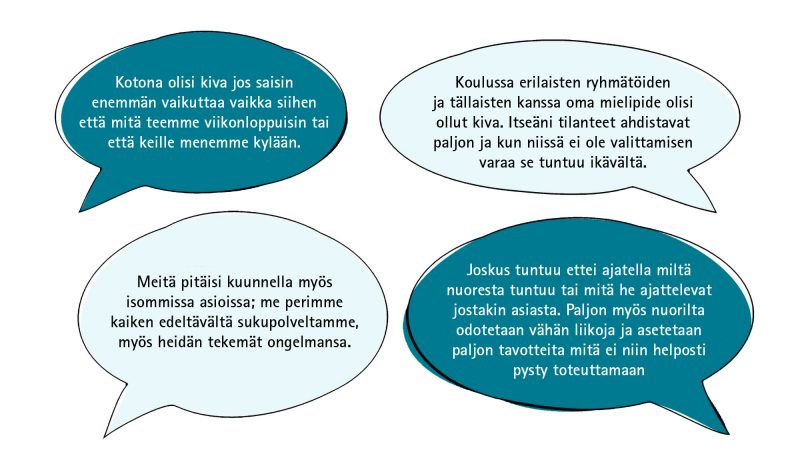 Lapset haluavat, että heitä kuullaan erityisesti heidän omissa arjen ympäristöissään, kuten koulussa, kotona ja harrastuksissa. Suurin osa lapsista ajattelee, että aikuiset tekisivät parempia päätöksiä, jos he ottaisivat lasten mielipiteitä enemmän huomioon.