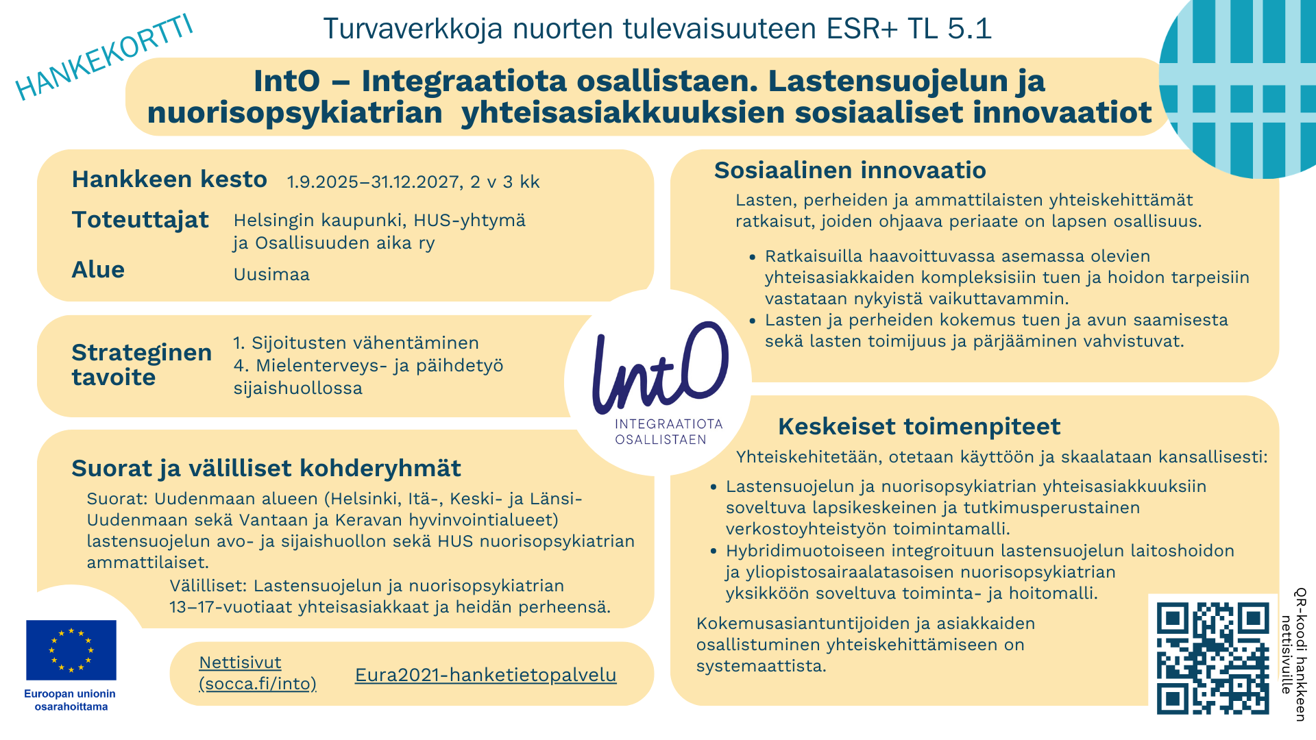 IntO – Integraatiota osallistaen. Lastensuojelun ja nuorisopsykiatrian yhteisasiakkuuksien sosiaaliset innovaatiot