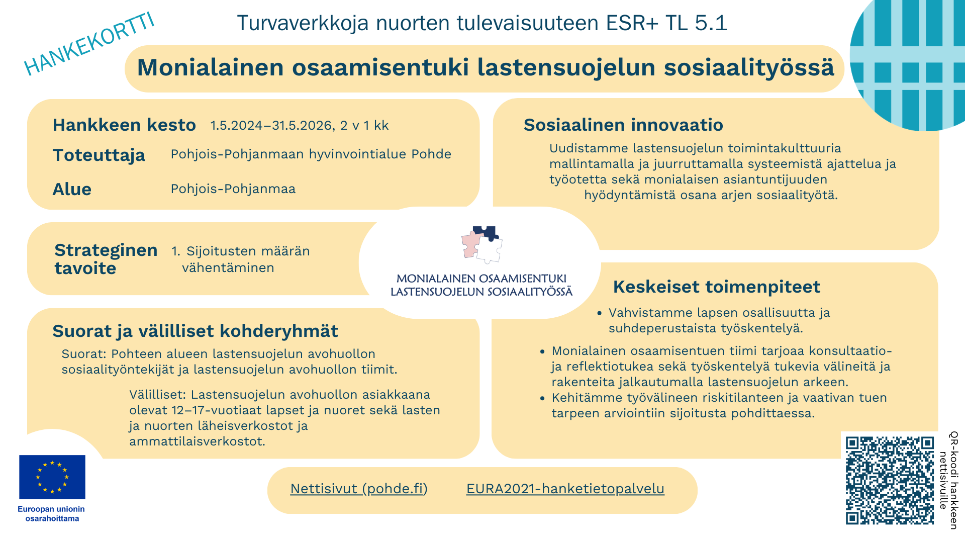 Rahoituspäätöksen saaneet aluehankkeet yhteystietoineen löydät myös EURA2021-hanketietopalvelusta: EU:n alue- ja rakennepolitiikan hanketietopalvelu ohjelmakaudelle 2021–2027 (eura2021.fi). Päättyneiden hankkeiden toimintamallit löytyvät myös Innokylästä Turvaverkkoja nuorten tulevaisuuteen -kokonaisuudesta (innokyla.fi).